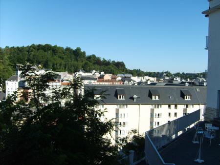 " Ma chérie assise sur un banc du couvent du Carmel de Lourdes qui domine la grotte de Massiabelle " .