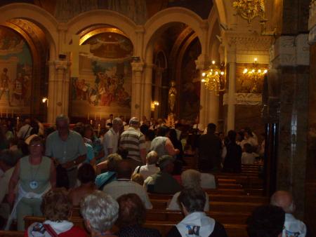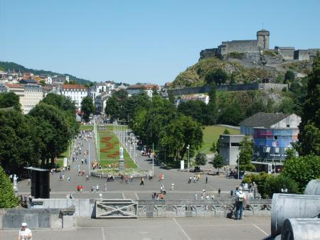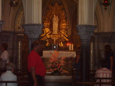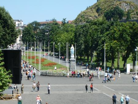 " Une photo de la Vierge Couronnée vue de loin, au fond : la sortie St Michel ".