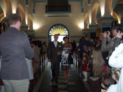 Le marié avec sa maman arrive à l'église ce samedi 07 juin 2008.