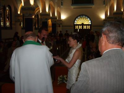 La mariée avec son papa arrive à l'église ce samedi 07 juin 2008.